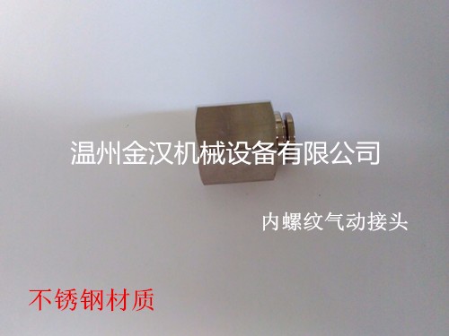 温州金汉机械设备有限公司专业生产、研发各种不锈钢气动接头十余年,工厂设有先进的CNC精密加工中心,可根据客户所需定制不锈钢元件,产品**,受到了广泛的好评,因而我们的客户遍及海内外。随着经济社会的稳定快速发展**相关政策的扶持,气动行业发展迅速,金汉机械将会抓住机遇,打造国际化品牌。产品订购以及详情咨询欢迎来电洽谈。