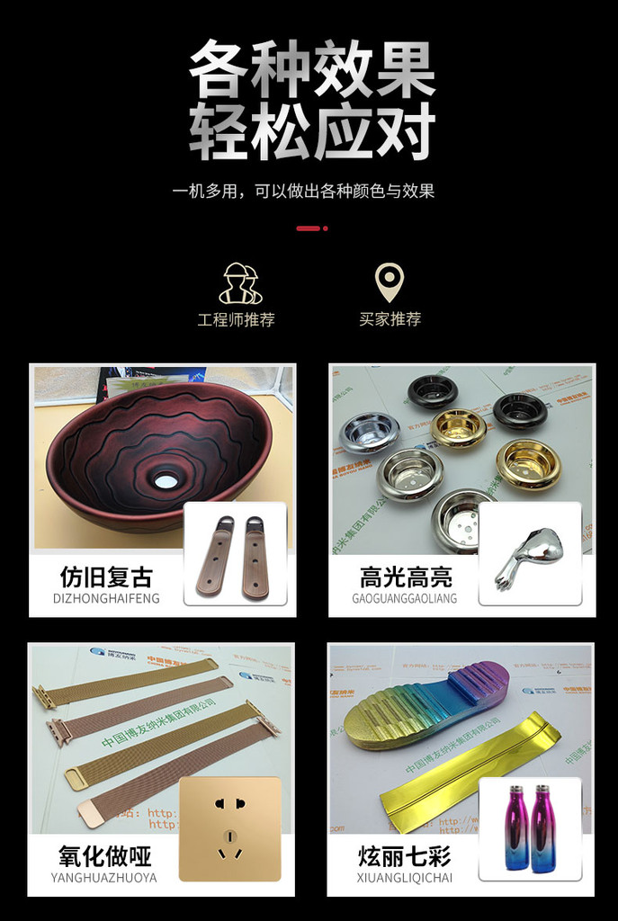 业务范围:纳米喷镀加工、纳米喷镀打样、纳米喷镀原料销售、纳米喷镀工艺车间规划与筹建、纳米喷镀全套技术转让,诚招全国代理。