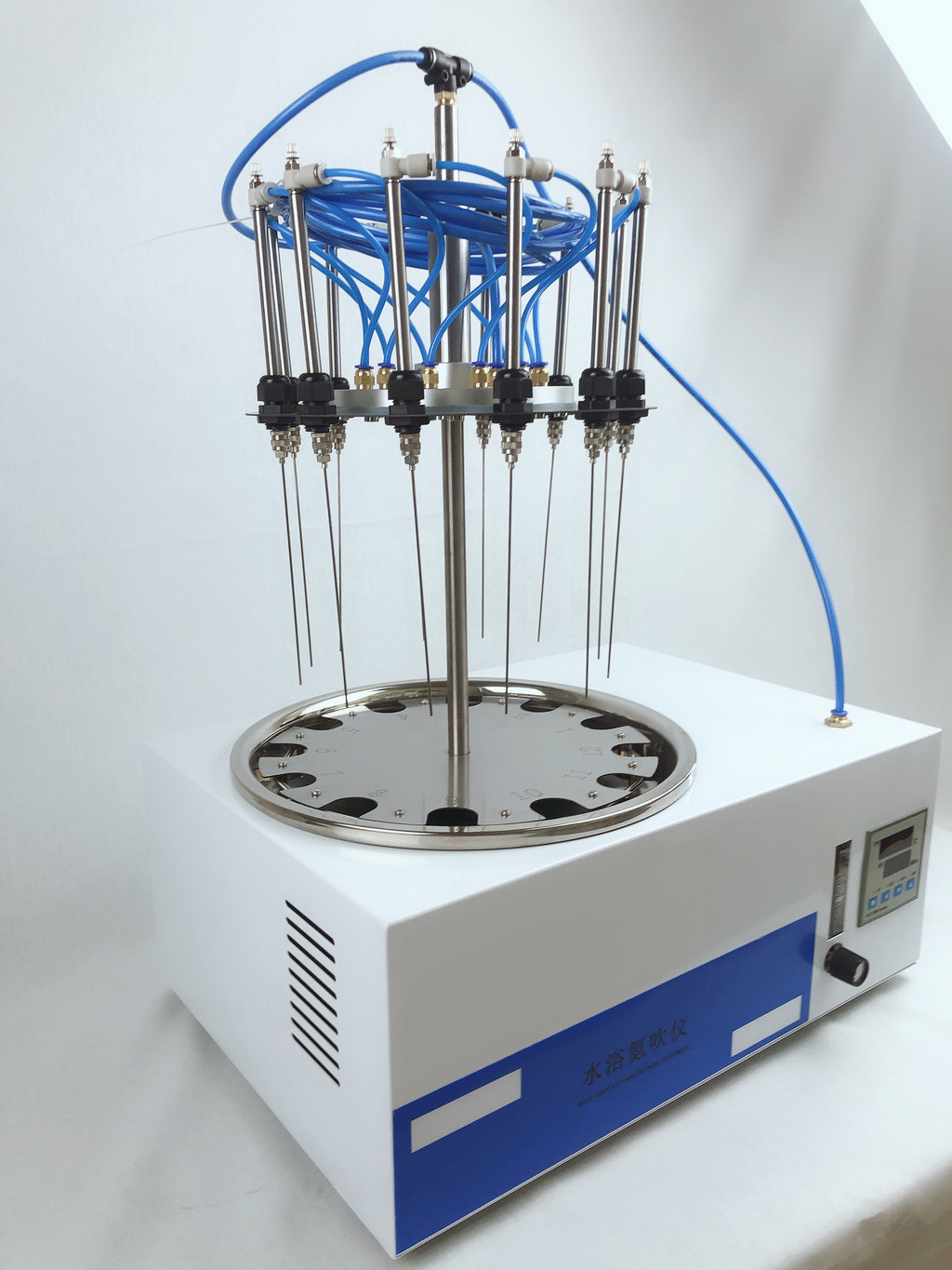 8.圆形电动升降水浴氮吹仪的所有部件均匀不锈钢制造,可耐酸碱等有机溶剂。