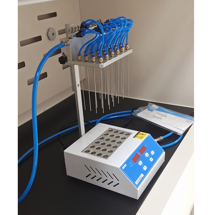 3、水浴氮吹仪具有独特的悬挂升降系统,设计巧妙,使分配室的高度调节更加灵活,真正实现单手操作。