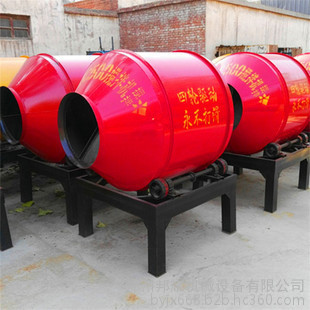 新一代小型混凝土搅拌机:滚筒内有钢板弯制而成,使整体框架具有更好的承托力,可以达到搅拌均匀且出料快