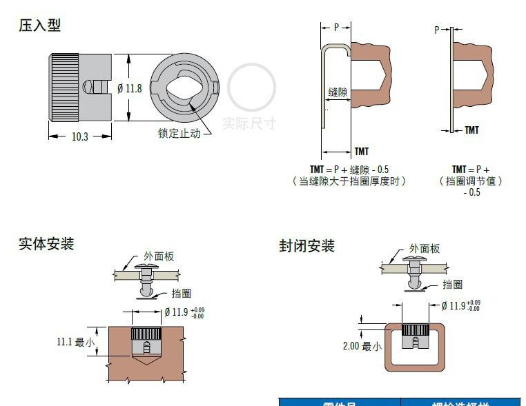 节省空间紧固件在0.5mm(.02")的确定间距范围内预留了一个**的空隙,以准确放置面板。为解决在尺寸不变的情况下金属平板的应用提供了一个很好的解决方案。紧固件提供0.5mm(.02")的螺栓长度增量,以实现与应用需求的**匹配。