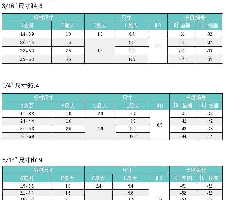 提供低廉的总安装成本,省去螺钉,螺母和螺栓的使用多种直径选择– .188"、.250"和 .313" – 每种都有多种间距范围调节孔误差及门板厚度误差混合并搭配垫圈及插棒颜色,三种头型绝缘体,抗腐蚀材料
