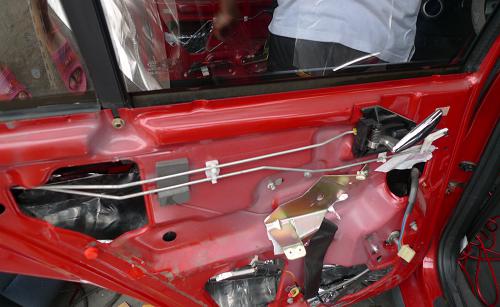 (4)在车门内饰件的内面贴上一层隔音棉,在门板的内侧粘贴减振垫,加装车门密封条以加强车门与车门框的密封性。经过这样的施工,不仅能加强车门的刚性和减少共鸣声,而且能有效降低汽车高速行驶的风噪声。