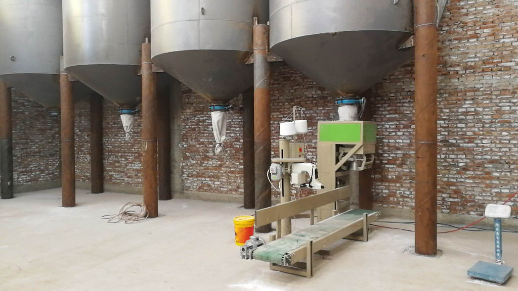 量斗,一次称够预设重量后,流入袋子中。