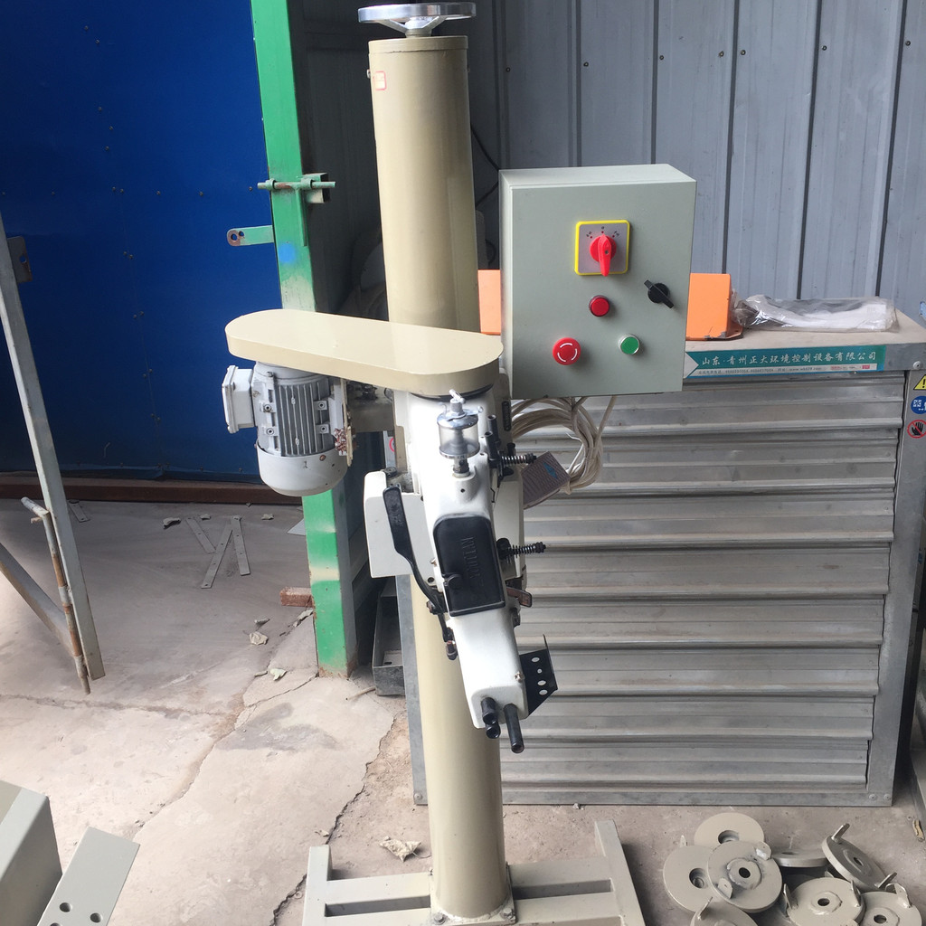 半自动立式缝包机:人工控制(脚踏开关)控制缝包机的启停,人工手推切线,适用于