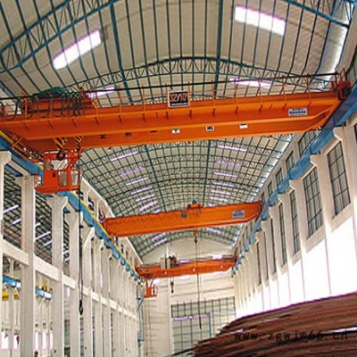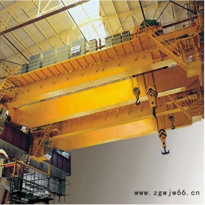 | 整台起重机是由桥架、小车(装有起升机构和运行机构)、起重及运行机构和电气设备四大部分组成。起升机构、小车运行机构和起重机运行机构是起重机的三个工作机构,各机构都备有单独的电动机,进行各自的驱动。起重量5、10吨的起重机为单钩起重机,仅有一套起升机构。16/3.2~50/10吨的起重机,则具有两个吊钩。因此有主副两套独立的起升机构,主钩是用来提升重的物件,副钩除可提升较轻的物件外,在它额定的负荷范围内也可用来协同主钩倾转或翻倒工件之用,但必须注意的是,不允许两个吊钩同时提升两个物件,两个吊钩一起工作时,物件的重量不许超过主钩额定起重量 |