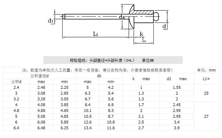 | 型号 | 铆钉 |