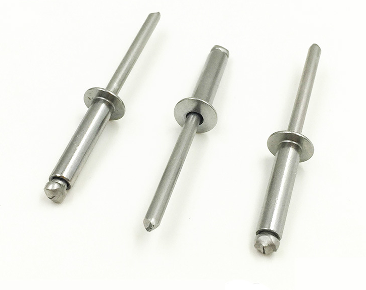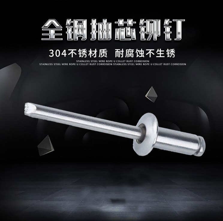 3、开口圆头不锈钢拉钉广泛应用于:客车制造建筑、机电、造船、箱柜、汽车制造、家用电器等行业。适用的材料范围:对纸板、胶合板、玻璃纤维板、石棉板、塑料、橡胶板、金属板等材质的工件均可以进行紧固联合。具有操作简便,铆合优良,外型美观,物理性能高,可以单面进行铆接等优。我公司常年生产供应各种型号、规格及材质组合的(GB 12618),(GB 12617)等。是一种盲面铆接新型紧固。