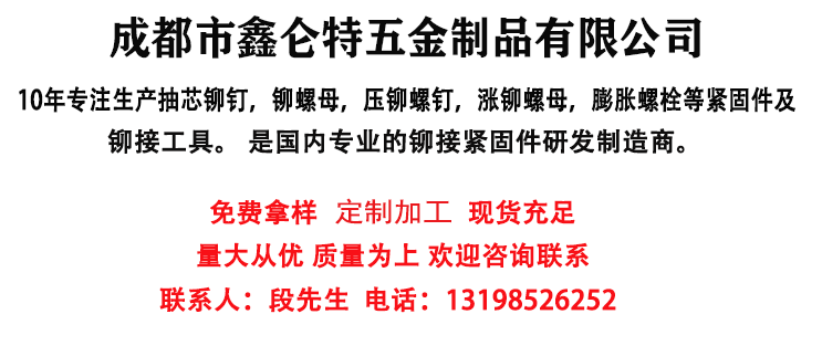 二、拉铆螺母是近几年来应用较多的紧固件,它的出现,在一定范围替代一些传统焊接的加工处理方法。而拉铆螺母正是解