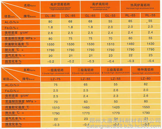 高铝砖性能特点及适用范围