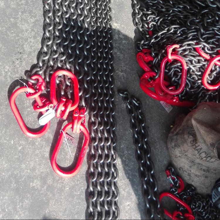 链条索具采用有限元分析和CAD辅助软件,参考EN818-4、GB/T20652等标准规范制作生产,链条索具按照索肢数量可分为单肢、双肢和多肢。其突出的优点是耐磨、耐高温、耐腐蚀、延展性低、受力后不会伸长等,主要用于制造业、交通运输业、采矿业等领域。
