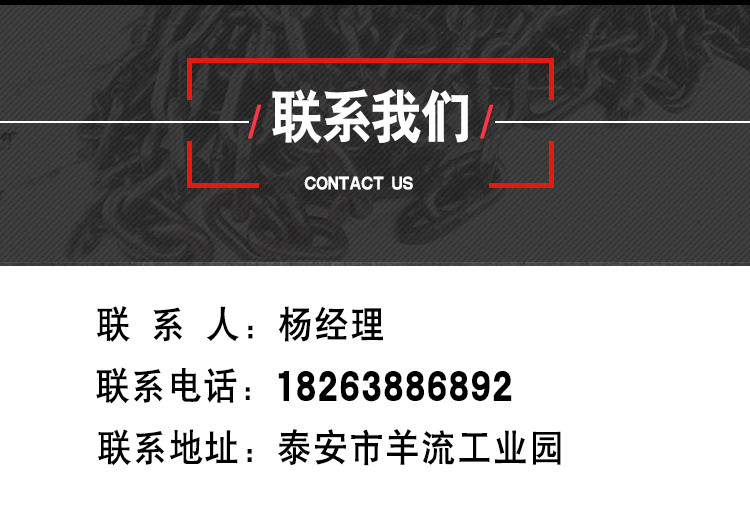 | 本公司坐落于中国山东省泰安市,欢迎惠顾!我公司位于泰山脚下,南临一代圣人孔子故里曲阜,京沪高速、铁路干线环绕周边。人文地理位置得天独厚,巍峨壮丽的泰山打造了我公司的厚重与诚信。愿与广大新老客户广泛合作,共谋发展,为您的事业增辉添彩、创造辉煌。 持长期以来,本公司坚持“实施品牌战略,超越顾客希望,持续质量改进,靠信誉求发展”的质量信誉方针,使产品的品质档次大大提高,市场占有率不断增长,产品销售全国各地。近几年来相继出口到俄罗斯、美国、德国、加拿大、英国、日本、土耳其、比利时、印度、越南、欧洲、中东等地区,赢得广大用户的信任与支持,在市场上享有很高的信誉,是省级合同守企业,山东省对外贸易进出口的重点企业。 |