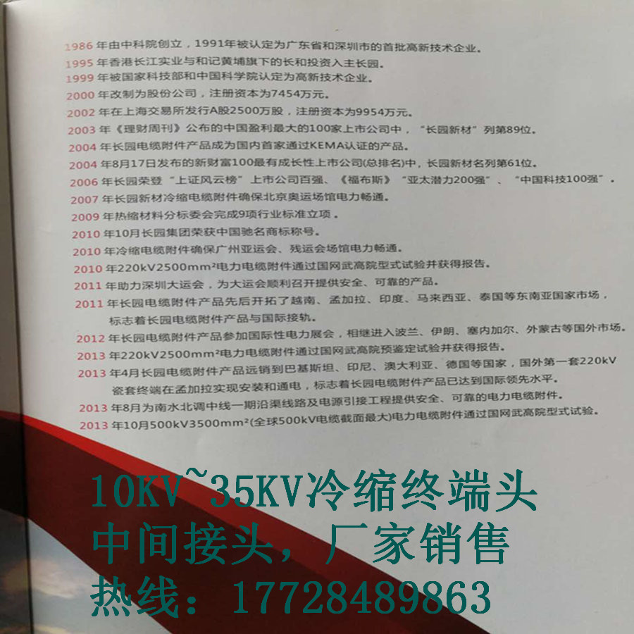 1X3500mm???? 电缆附件的成功开发,是长园电力电缆附件技术的一个重大的里程碑,也大幅度提高了长园电力为电力系统服务的综合实力。