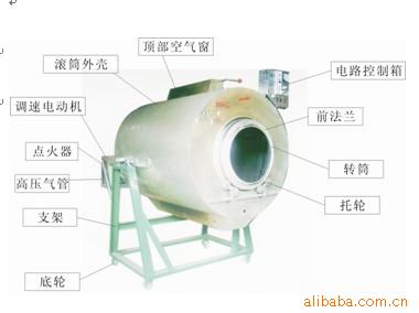 由机架、内滚筒、外圆筒、无级调速电机、变速箱、液化气排等主要零部件组成。