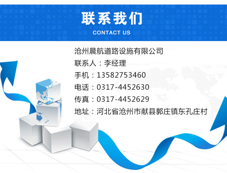 沧州晨航道路设施有限公司坐落于古城沧州,东临京沪高速,南依307国道与石黄高速,西傍106国道,地处京津石三地中心地带,交通便利。