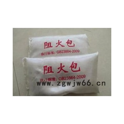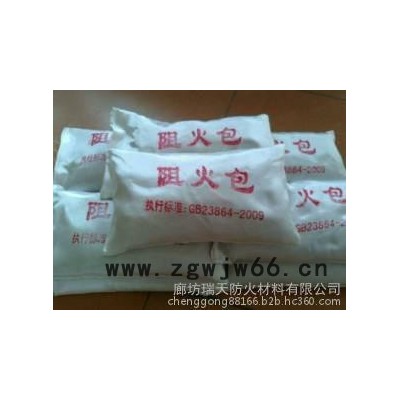 防火包是我公司 根据GB23864-2009**标准研制成功的新型防火配套耐火材料,该产品可根据用户的不同要求垒制才各种形状的防火墙、防火层,也可封堵需要作防火处理的孔洞。遇火时,防火包内的物质受热迅速膨胀炭火形成具有一定厚度和强度的阻火屏障,释放出不燃气体,达到隔热、阻火、隔烟的作用。