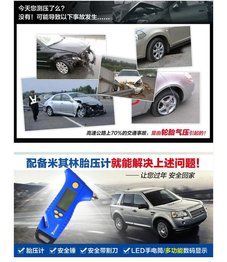 米其林/Michelin 胎压计(安全锤/手电筒/安全带割刀