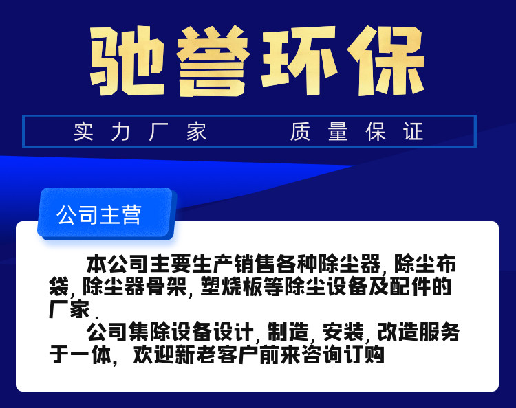 本公司供应除尘布袋,布袋除尘器,卸料器,斗式提升机,螺旋输送机驰誉环保DMC驰誉环保 DMC 是 沧州 下进风上出风 内滤式,质量保证,欢迎咨询洽谈。