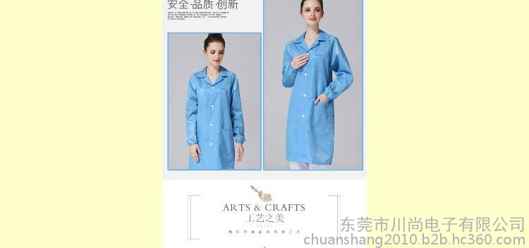 防静电服制作要求:此面料采用专用涤纶长丝,经向或纬向嵌织日本钟纺公司Belltron9R系列导电纤维。具有高效、**的防静电、防尘性能,薄滑,织纹清晰的特点。在制作成衣过程中采用专的包缝机械,有效减少微粒的产生。无尘的粘扣带避免了因掉毛污染环境。根据级别要求提供不同款式,并采用导电纤维缝制,使服装每个部分保持电气连续性;袖管裤管为特有的双层结构,内层使用导电或防静电罗纹,从而满足**别无尘环境的要求。其性能指标符合GB12014-89标准:布料电荷密度≤5μC。