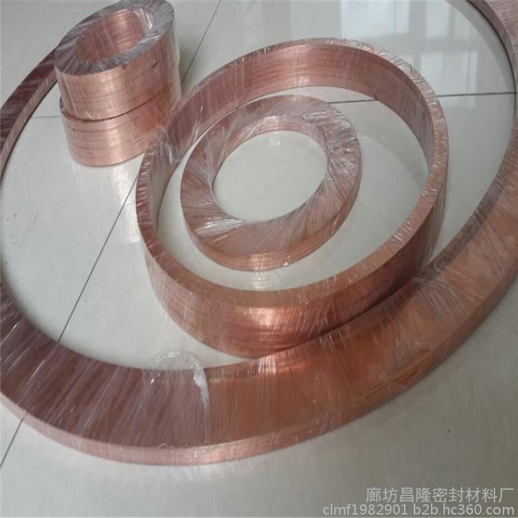这种垫片采用的原材料是紫铜 因呈紫红色而得名。它不一定是纯铜,有时还加入少量脱氧元素或其他元素,以改善材质和性能,因此也归入铜合金采用**的紫铜板材具备良好的焊接性,可经冷、热塑性加工制成各种半成品和成品,经数控车床精密车削确保密封面平直不翘曲,高精度研磨确保金属面与法兰密封面紧密贴合。退火板材的室温抗拉强度为22~25公斤力/毫 米2,伸长率为45~50%,布氏硬度(HB)为35~45。可以满足客户的淬火、酸洗等各种要求。使用温度小于400℃ 材料选择: 铜Hpb59-1,H62,H65,H68(RoHS)环保铜,紫铜,硅青铜,各种铝青铜,锡青铜,锰青铜,锰黄铜,铬锆铜 等