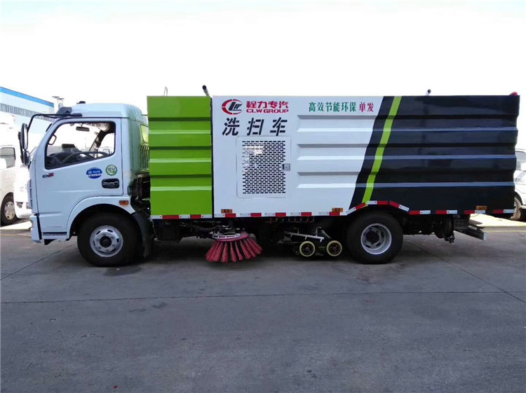 程力公司生产的扫地车解放扫地车、江淮扫地车、庆铃扫地车、东风多利卡扫地车、福瑞卡扫地车、东风145/153扫地车、天锦扫地车等等!程力扫路车采用中置四扫刷、吸口后置的布置方式,使得整车结构布置简捷、清扫效果良好。该车的垃圾箱及水箱为全部采用超厚不锈钢材料制作;垃圾箱与水箱为整体结构,水箱在垃圾箱的底层使垃圾箱底板预倾角高达12°以上,便于垃圾倾倒干净。垃圾箱顶部设置了导流槽及较大面积过滤网,能够充分提高降尘效果,使的垃圾堆积均匀,增加有效容量,减少因轻浮物堵塞滤网而产生的空气阻力。