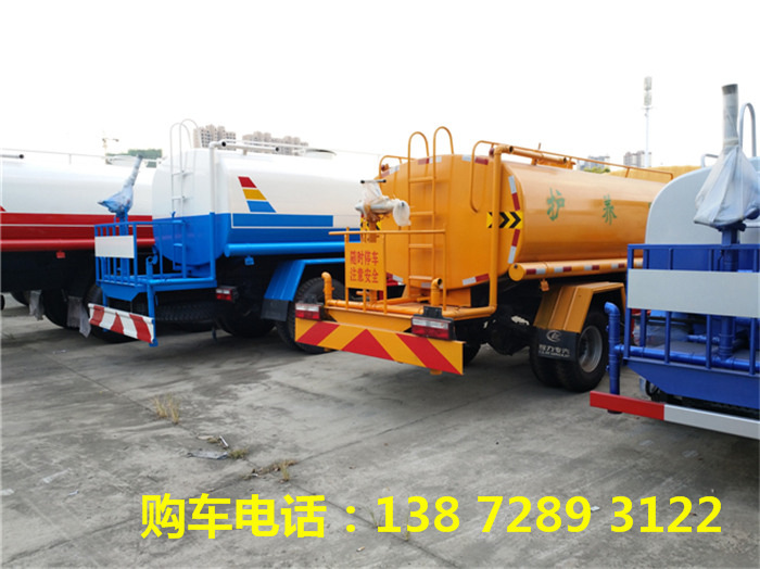 洒水车前冲(喷)后洒,带侧喷,罐体后带工作平台,平台上安装绿化洒水炮,洒水炮可全方位旋转,可连续调成直冲状、大雨、小雨、毛毛雨,带安全护栏,配备全国质量评比名的杭州威龙大功率专用洒水泵,泵可自吸自排,安装过滤网,带消防接口,可通过消防栓进水,带自流阀,随车选装20米绿化卷盘,可喷洒农药,罐体金属漆。 购车热线:13872893122