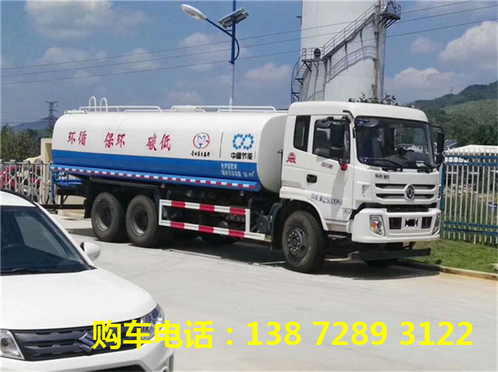 9.东风天龙后双桥|后八轮洒水车:该车采用东风原装底盘,平头前翻驾驶室,东风康明斯245马力或260马力柴油发动机,8档变速箱,11.00R20轮胎,带空调,带助力,罐体有效容积:16吨-25吨,该车带免征公告。 (图上)