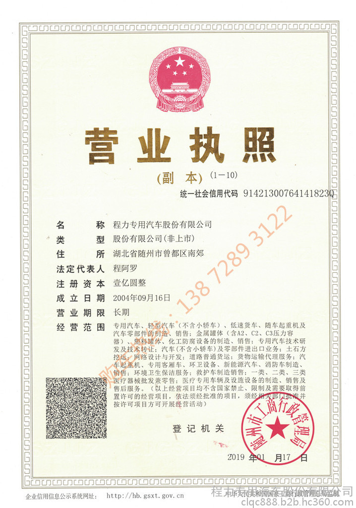 公司地址:湖北省随州市曾都区南郊程力汽车工业园