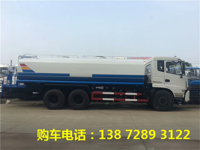 9.东风天龙后双桥|后八轮洒水车:该车采用东风原装底盘,平头前翻驾驶室,东风康明斯245马力或260马力柴油发动机,8档变速箱,11.00R20轮胎,带空调,带助力,罐体有效容积:16吨-25吨,该车带免征公告。 (图上)