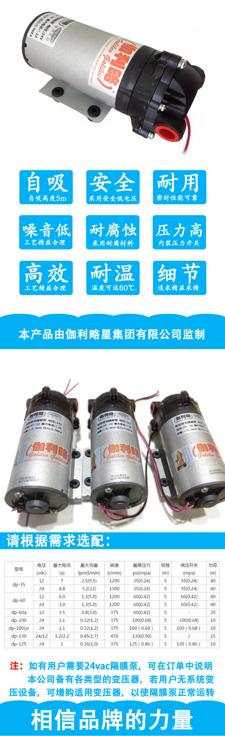 1.噪音低、耐腐蚀、压力高,自吸高度5m.
