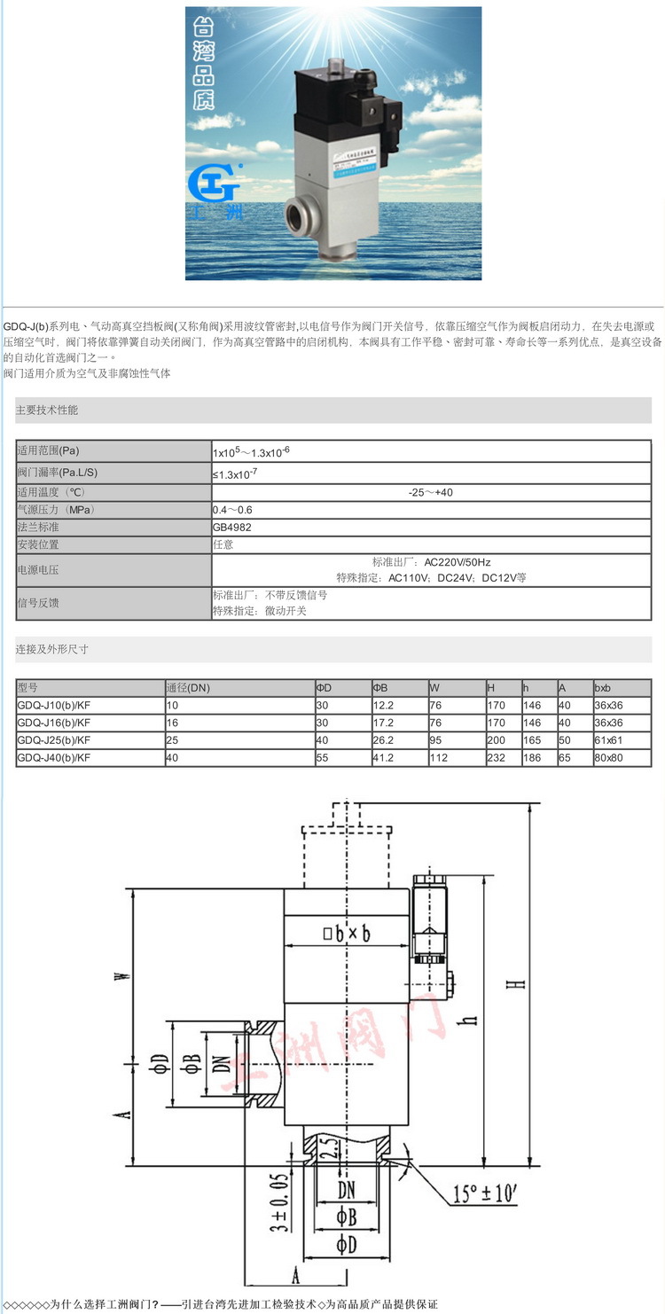 GDC-J型系列电磁高真空挡板阀是靠电磁力和弹簧复位力,用以打开或关闭的阀门,适用于真空系统中用以打开或隔断气流之用。当阀关闭时,允许阀板密封面上侧承受大气压,下侧为真空,在此状态下接通电器控制盒电源后,阀板能正常开启。