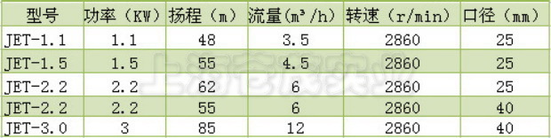 JET自吸喷射泵型号参数: