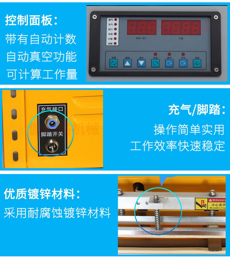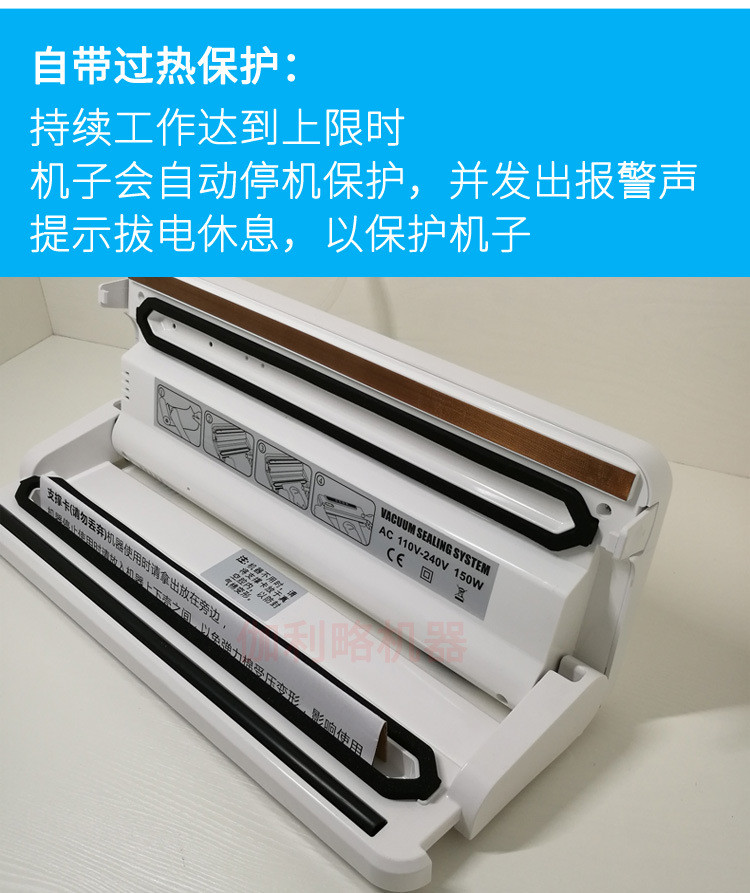 。7、当主电路温度过高时,过热保护装置工作时,机器自动停机。当温度降至正常时,设备会自动开始自动密封。