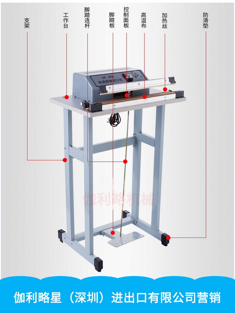 3、该款封口机是将塑料包装袋连续不断地由传送→送进→封口→冷却→滚花或印字。具有连续封口效率高、封口质量好、结构合理、操作方便等特点。可与各种包装流水线配合使用,其封口长度不受限制,并适应于各种不同材料的塑料薄膜袋。