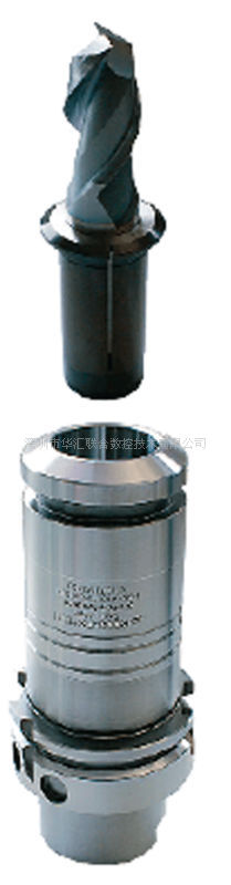 ??该系统由刀柄、夹紧套和液压装置组成。夹紧套的外圆有一个很小的锥度,把刀具装入夹紧套后,借助液压装置将夹紧套压入刀柄,夹紧刀具。卸刀时也需要使用液压装置取出夹紧套。装卸刀具的时间不超过10秒钟。夹紧套内有一个调节刀具长度的螺钉。