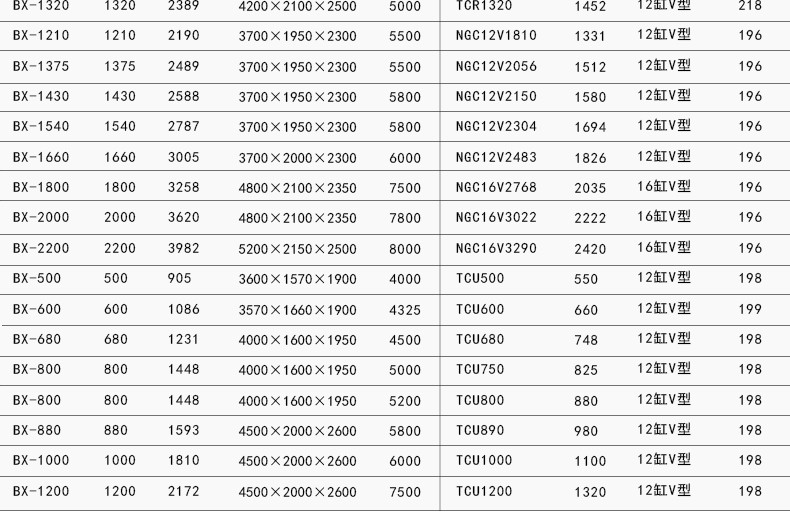5、具有强的高原工作能力,功率下降低于3%,功率范围200kw-2200kw