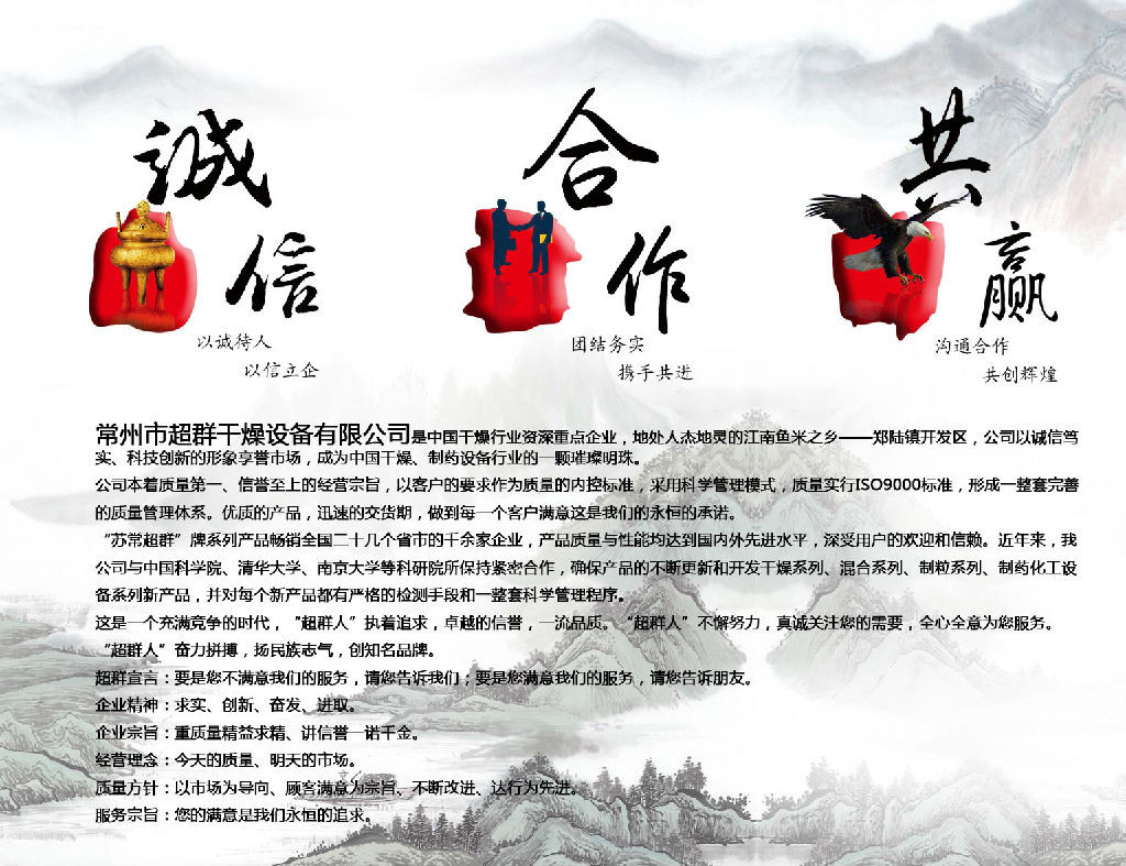 1、干燥速率大:由于料膜很薄,且传热传质方向一致,料膜表面可保持30-70kg..H2O(m2.h)的汽化强度.