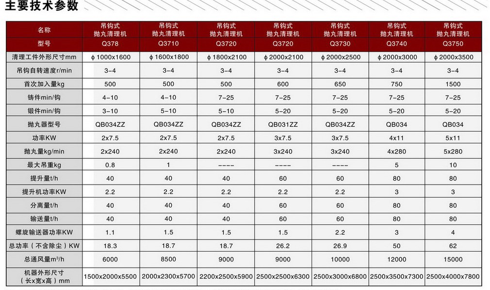 Q3720吊钩式抛丸机双吊钩式抛丸清理机主要特点: