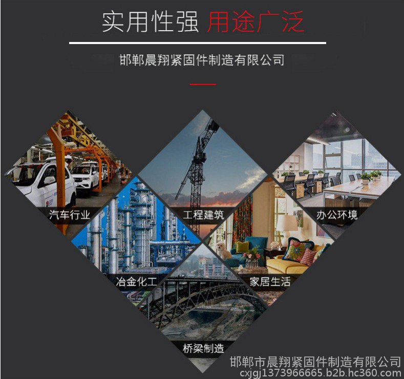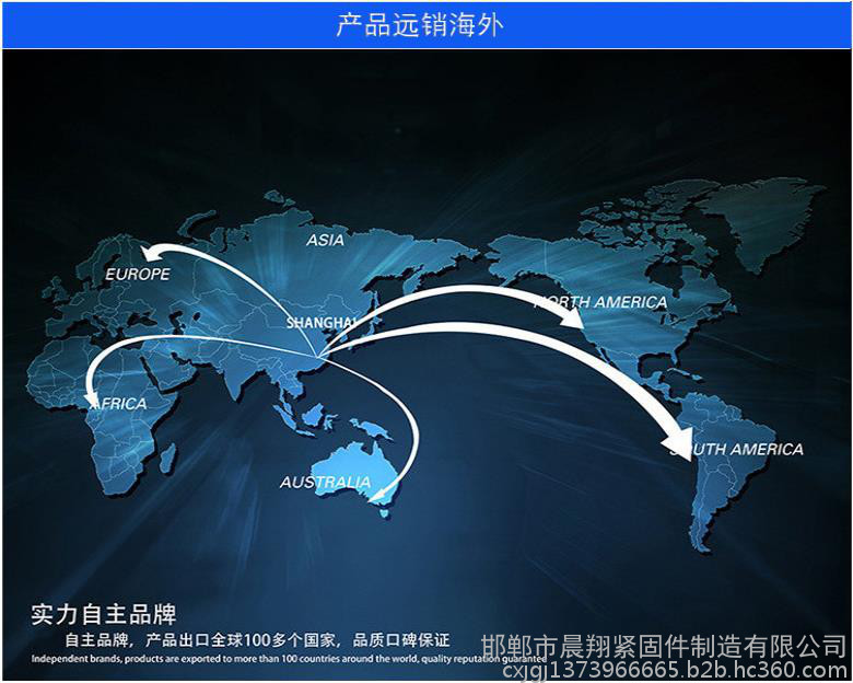 邯郸市晨翔紧固件制造有限公司(焱鑫盛紧固件厂)地址位于地处全国标准件生产基地-----河北省永年区西南工业开发区,是一家建厂较早的专业紧固件公司,公司具备全套的紧固件制作工艺,完备的检测手段和先进的生产技术,实行全天候服务,交通四通八达!本公司拥有多年的紧固件研发、生产、销售、服务于一体的发展历程,积累了丰富的国标紧固件,非标紧固件制造经验,造**了一批对高难度紧固件,高精度异形件设计制造的工程技术人员和经验丰富的一线技术人员。随着市场经济不断深入和加工技术不断进步,我厂的技术革新和设备改造日新月异,生产44模逐渐扩大,已形成对 高铁预埋,地铁工程、工矿配件、建筑配件,电力行业,系列产品开发、生产、制造、维修、加工为一体的多功能 综合企业。