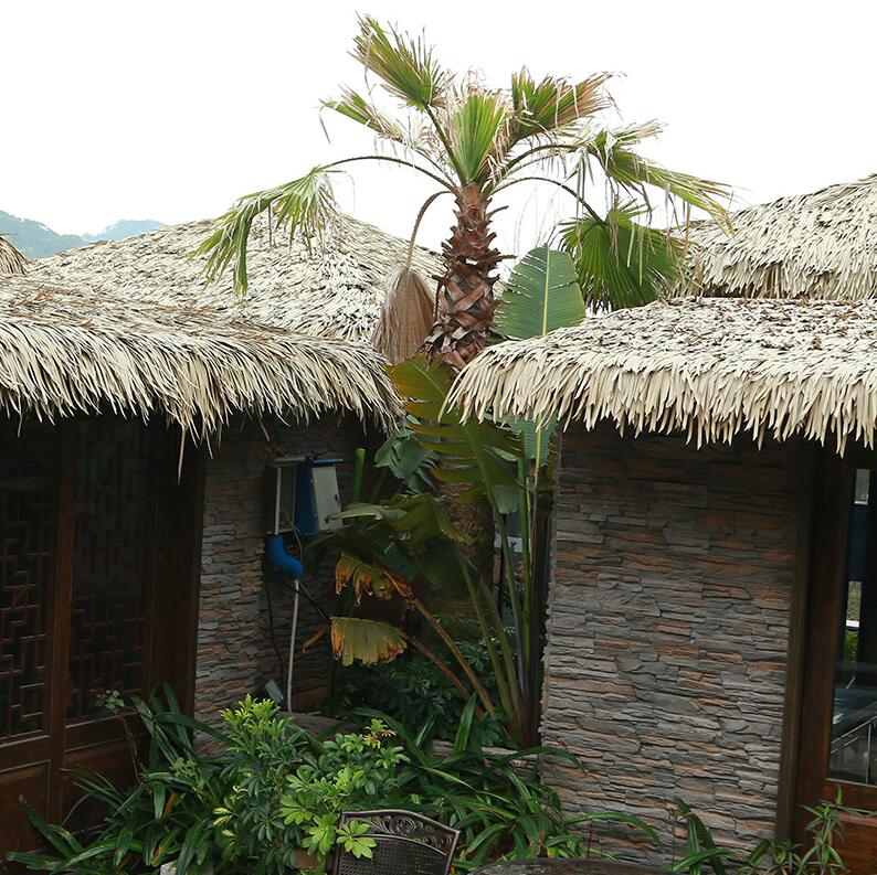 寓景仿茅草的特点: (1)可适用在任何天气和地方,不怕风吹雨打,天寒地冻。 (2)100%防火,易于通过防火条例。(3)安装非常简便,不用特殊工艺技术。(4)长远来说天然茅草屋顶既省钱又耐用,寿命长,不易腐烂,不用更换,不用定期喷防火剂,防虫剂等。(5)不受鸟粪、虫蛀、真菌的威胁和破坏。(6)使用时间越长,颜色越逼真等特点。 ?颜色:可根据客户的要求订做。但在一个屋顶上**好有两种或三种颜色。