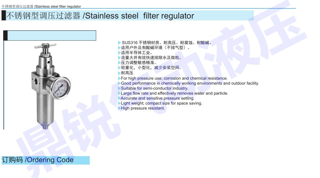 l 内置5微米滤网,可以过滤气源中的微小颗粒,并且可以通过排水盖排出凝集水。