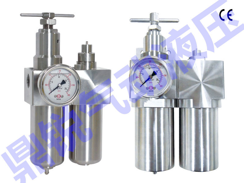 3、调压阀可单独使用,但调压阀进气口前端设置分水滤气器效果更佳。因未经分水滤气器过滤的空气的冷凝水,油污及灰尘会堵塞调压阀,使调压阀动作不良。若下游回路需要给油,油雾器应安装在不锈钢减压阀QTY系列DN15 DN20 DN25 DN40 DN50出气侧。当与分水滤气器、油雾器组合使用时,应按分水滤气器安装于进气方向最前面,调压阀次之,最后是油雾器。