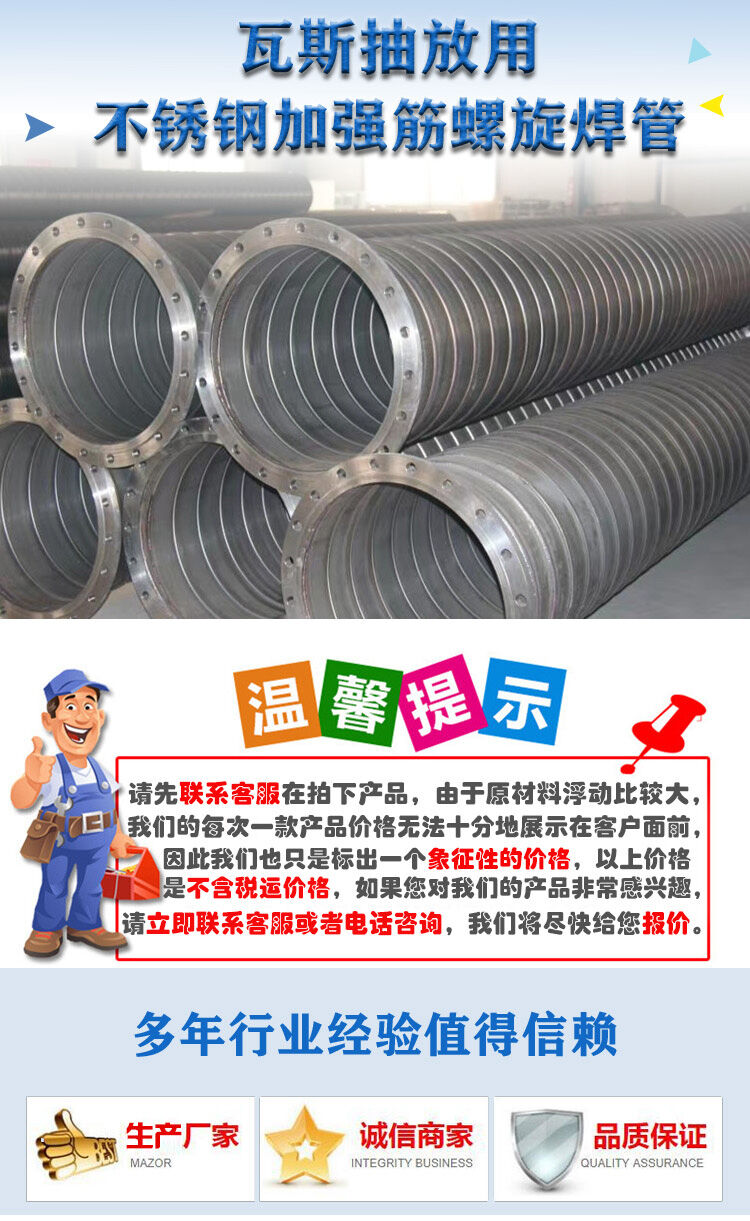 | 品名 | 不锈钢瓦斯螺旋焊管 |