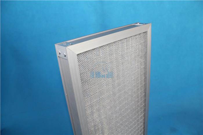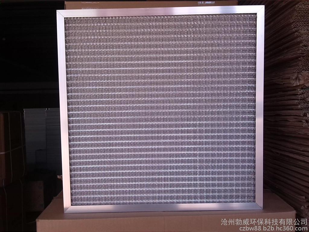 全金属过滤器采用多层扩张铝网或不锈钢网为过滤器的专用滤材,经辗压成波浪形,以正确的角度彼此交叉叠合排列而成。