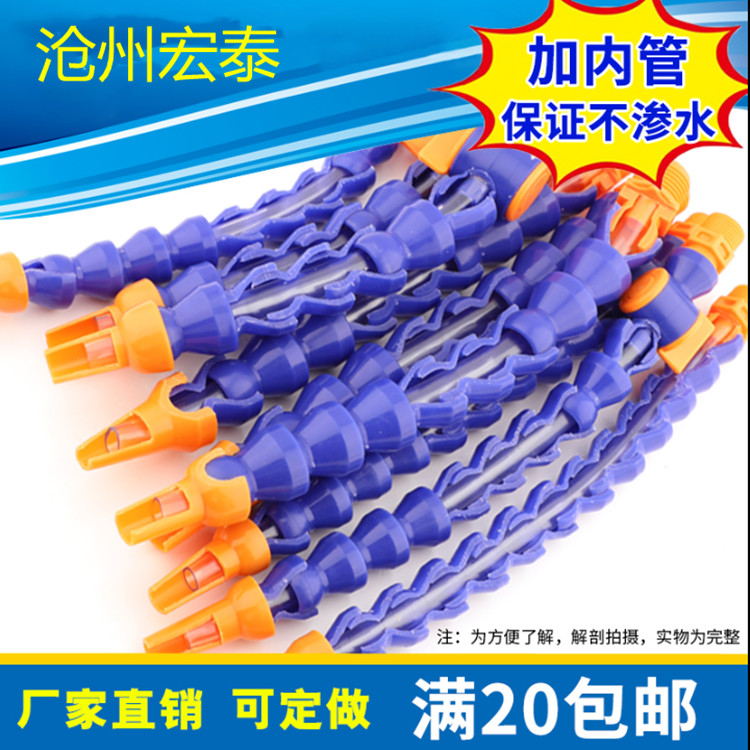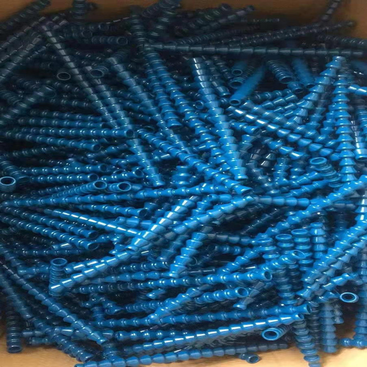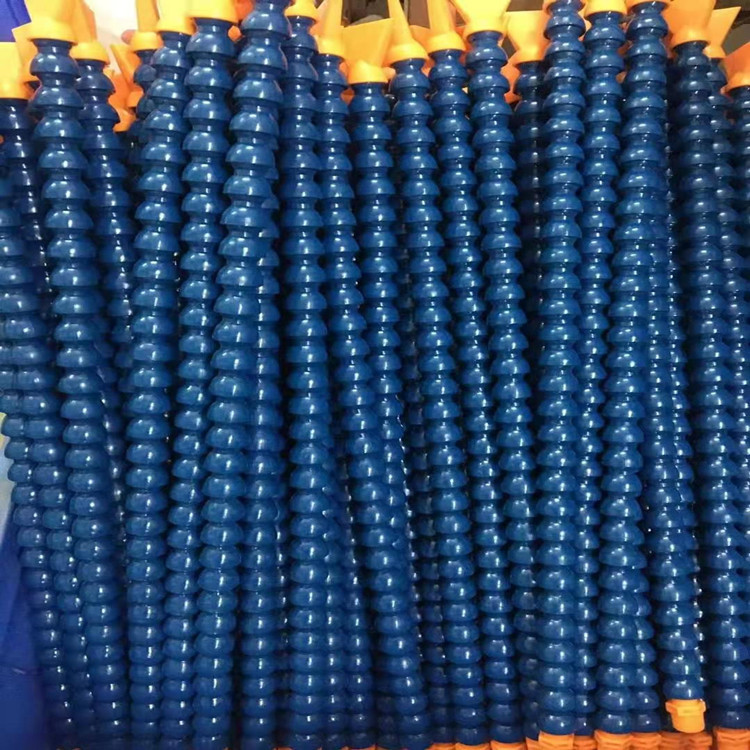 塑料冷却管又名可调塑料冷却管,万向塑料冷却管,工程塑料冷却管是液体及气体媒质的综合引导系统,压强可以达到4pa,它是工程塑料制作而成,它的各个节使用注塑工艺制成,其各节点连接接触曲面经过计算并使用很高的注塑技术制造而成。可调塑料冷却管无需加任何导管,靠自身接触曲面即可有很好的密封性。其接触面的紧密配合足以在高压水的冲击作用下,冷却水管保持其初始位置不变。可调塑料冷却管为意义上的模块式结构,不但可根据需要任意增加或减少节数,并且可以在各节间根据需要加装开关,且有不同的连接与出水。而且还有一进两出的三通, 工程塑料冷却管材质为尼龙66,出水嘴型有圆嘴、扁嘴和大口径圆嘴型,螺丝扣还有里螺丝外螺丝,是根据客户需求装置。