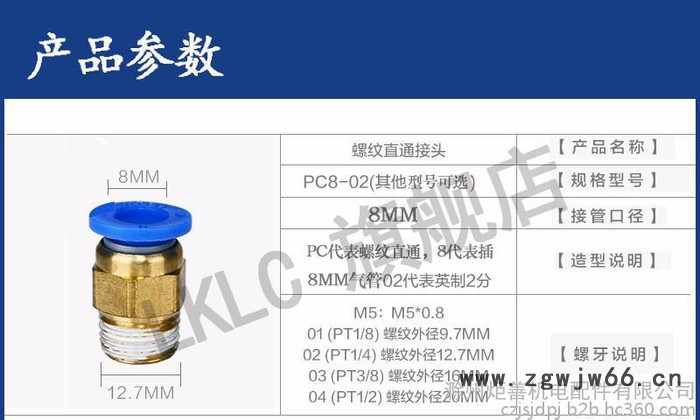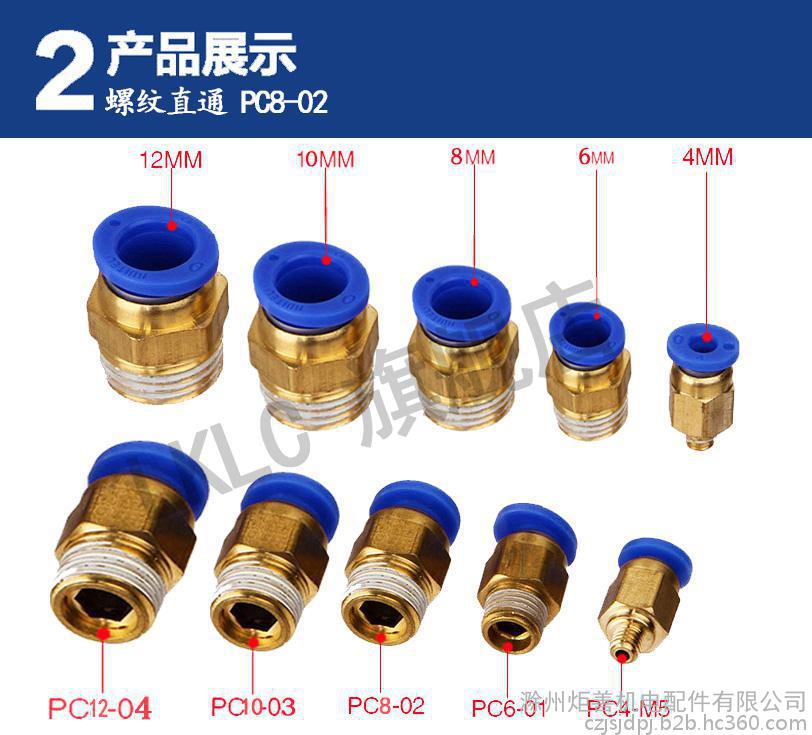 炬善 气管快速接头气管快速接头PC8-02螺纹直通4-M56-01/10-03/12-04快插铜气动