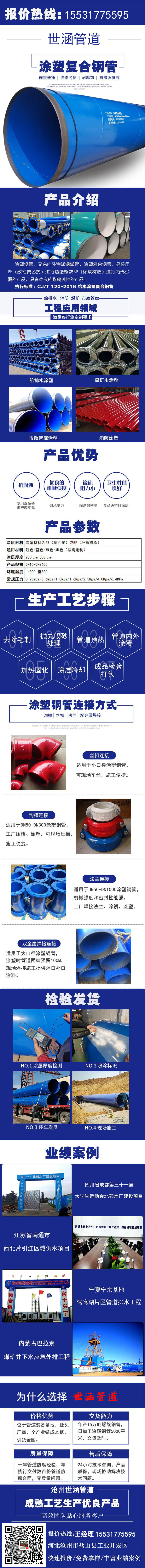 世涵管道 法兰式双抗涂塑钢管 卡箍链接涂塑钢管 沟槽式消防涂塑钢管生产厂家