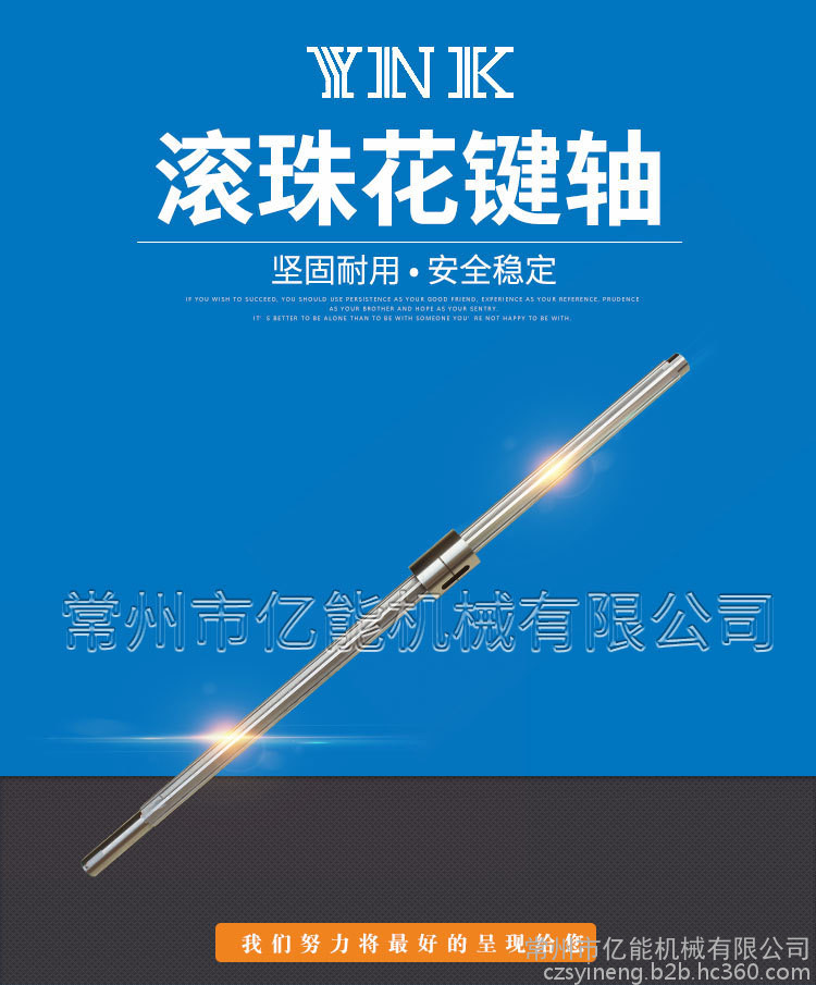 常州市亿能机械有限公司市场部是滚珠花键、滚珠花键轴、滚动花键、滚动花键副、滚珠丝杆、加工中心高精度齿轮、精密花键长轴长达4000毫米等产品专业生产加工的私营独资企业,公司总部设在常州市新北区薛冶路2号,常州市亿能机械有限公司市场部拥有完整、科学的质量管理体系。常州市亿能机械有限公司市场部的诚信、实力和产品质量获得业界的认可。欢迎各界朋友莅临常州市亿能机械有限公司市场部参观、指导和业务洽谈。