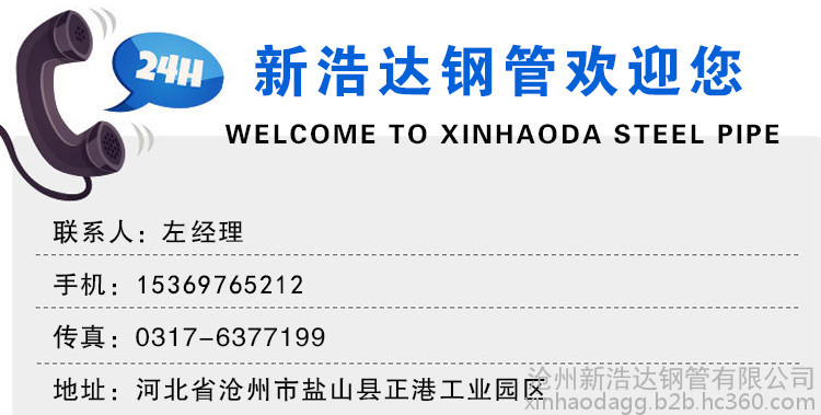 沧州新浩达钢管有限公司是华北地区专业从事钢管生产加工的现代化企业,集科研、生产、销售于一体的实业公司。公司位于中国管道装备制造之都的盐山县城南开发区。东临渤海、南接山东、北靠京津地处交通要道。交通便利,地理位置优越!具有良好的生产经营环境。专业生产加工钢管及其各种桥梁材料。主要产品为:钳压式声测管(桩基检测管)、螺旋式声测管、PEG声测管、法兰式声测管、承插式声测管、套筒式声测管、注浆管、注浆钢花管、隧道管棚管、超前小导管、承台冷却管、波纹管、锚杆、高速护栏等路桥专用系列产品。
